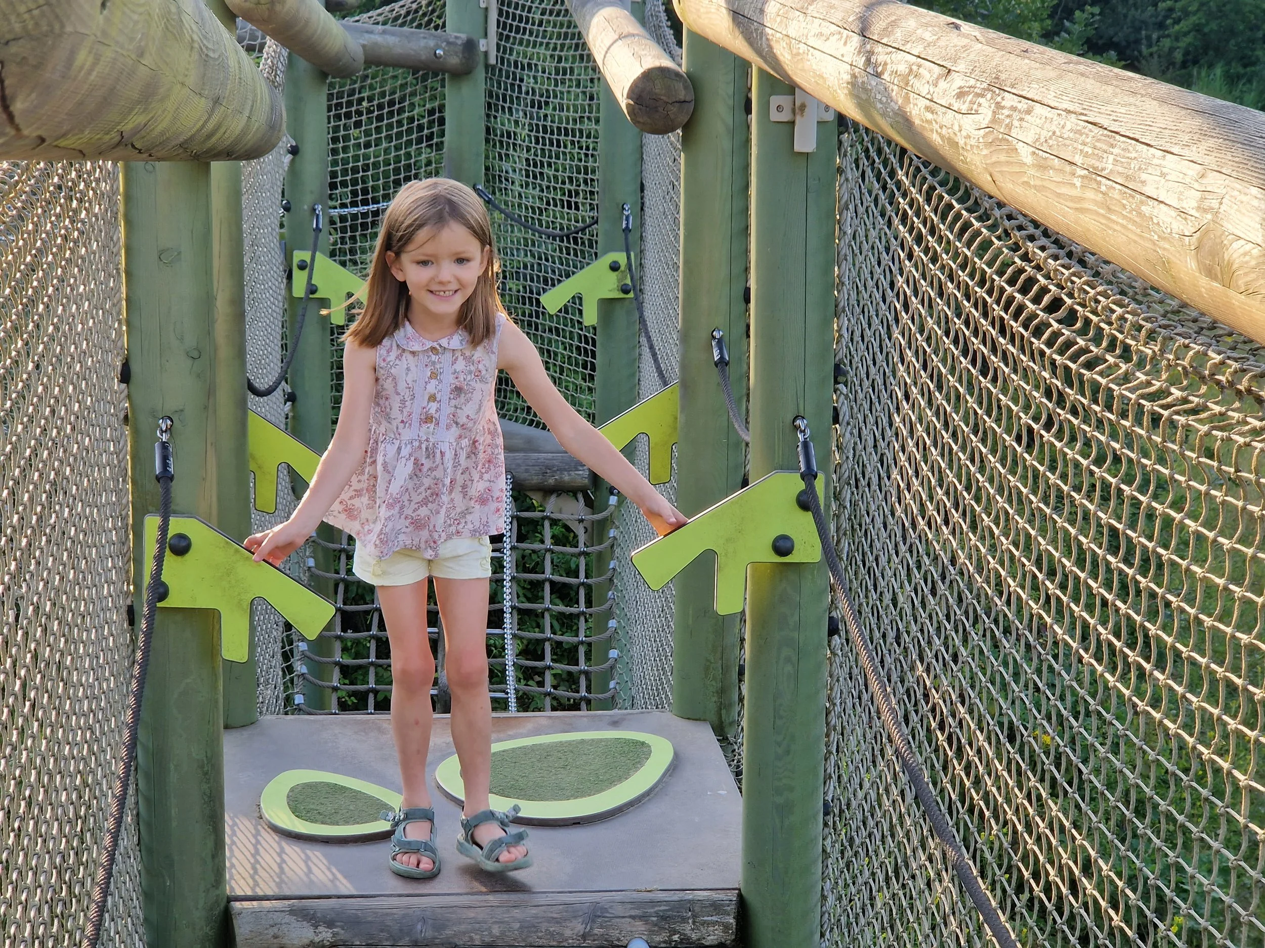 Boardwalks take you over the mire and through woodland before looping around the lake. At the end is a brilliant play area with water play and a seasonal paddling pool.