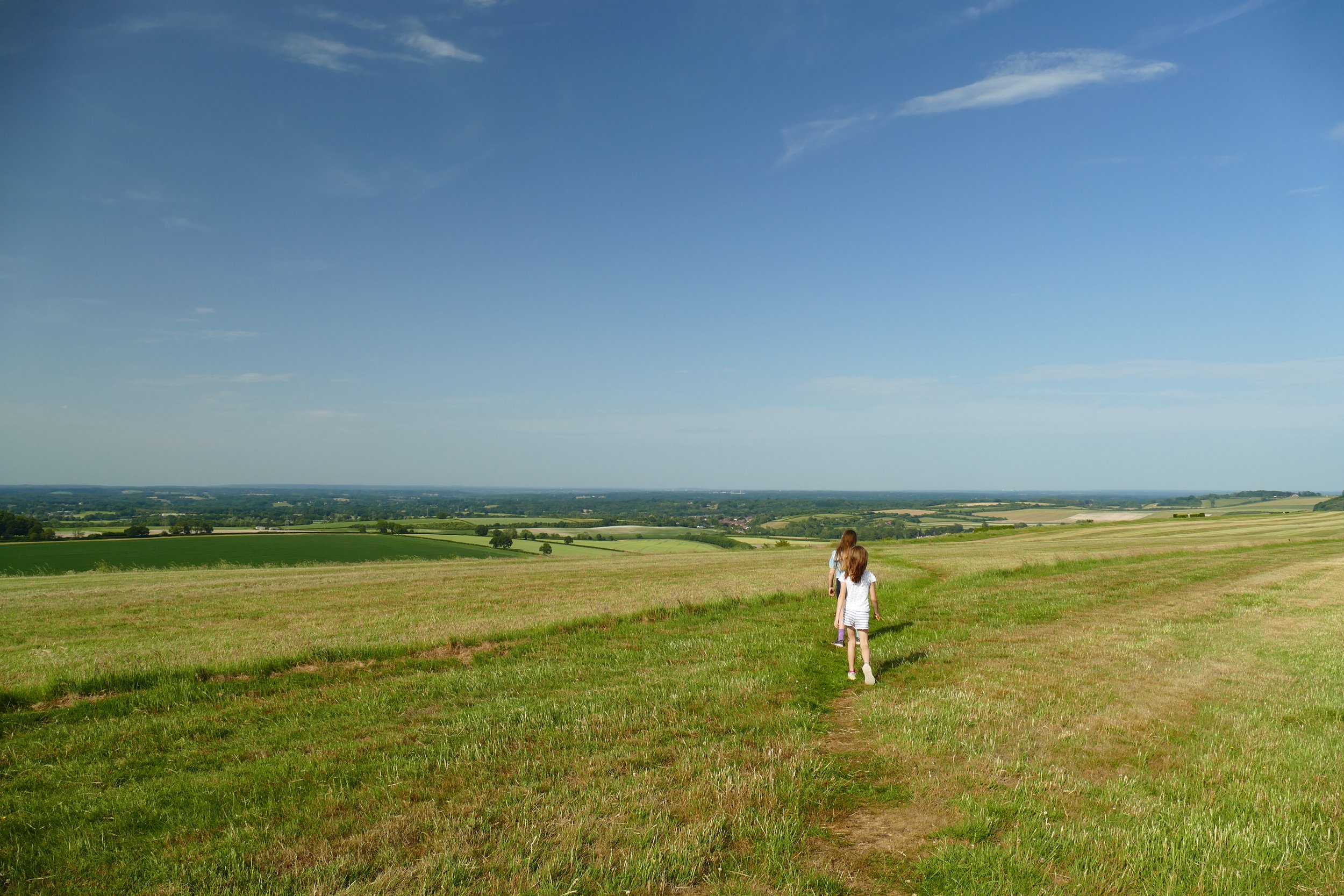 At the top, the chalky path circling the hill fort will be obvious. You can loop around in either direction. You will find views to Highclere Castle (Downton Abbey) on the north side as well as the grave of the 5th Earl of Canarvon, best known as the financial backer in the excavation of Tutankhamun's tomb.