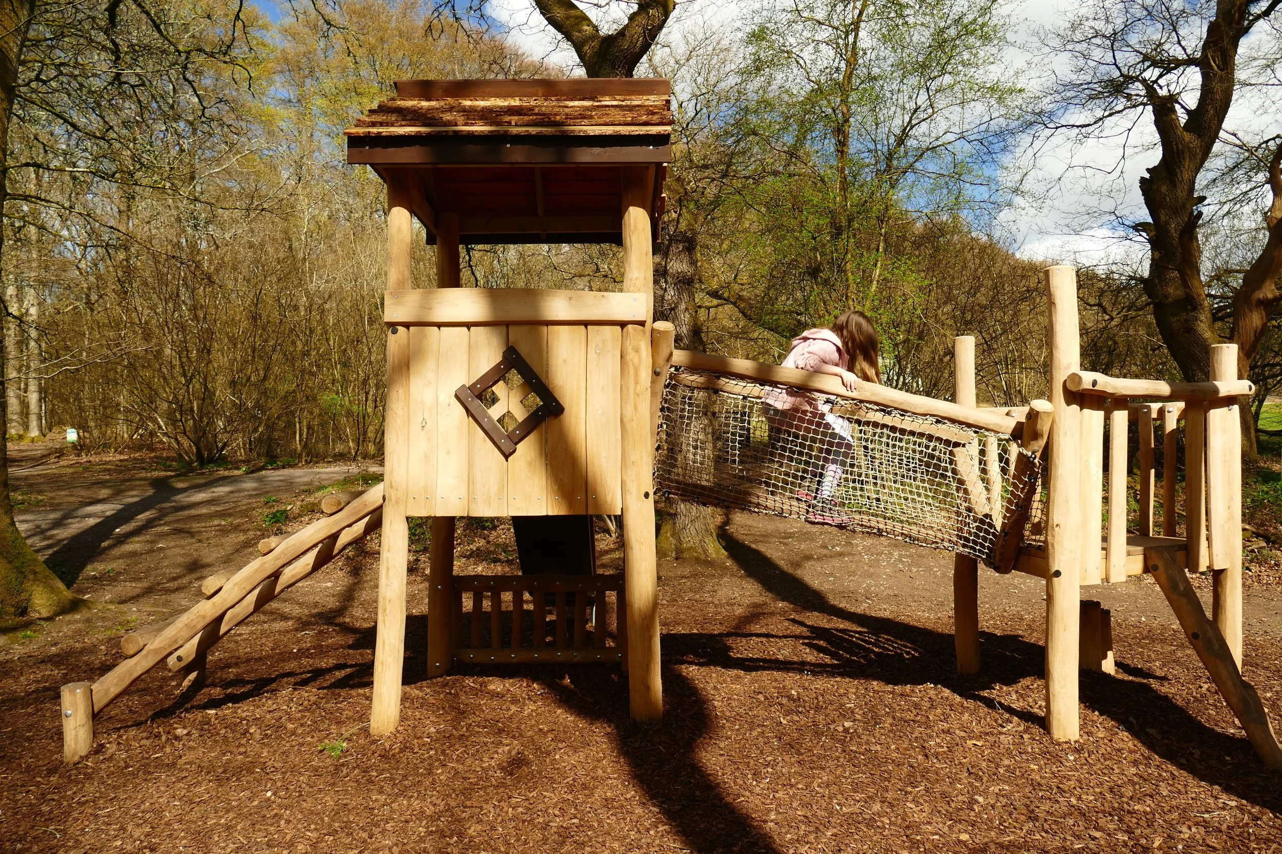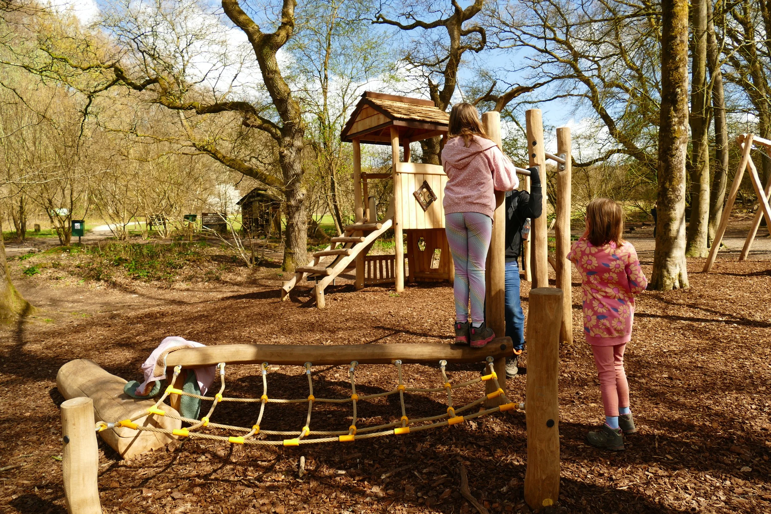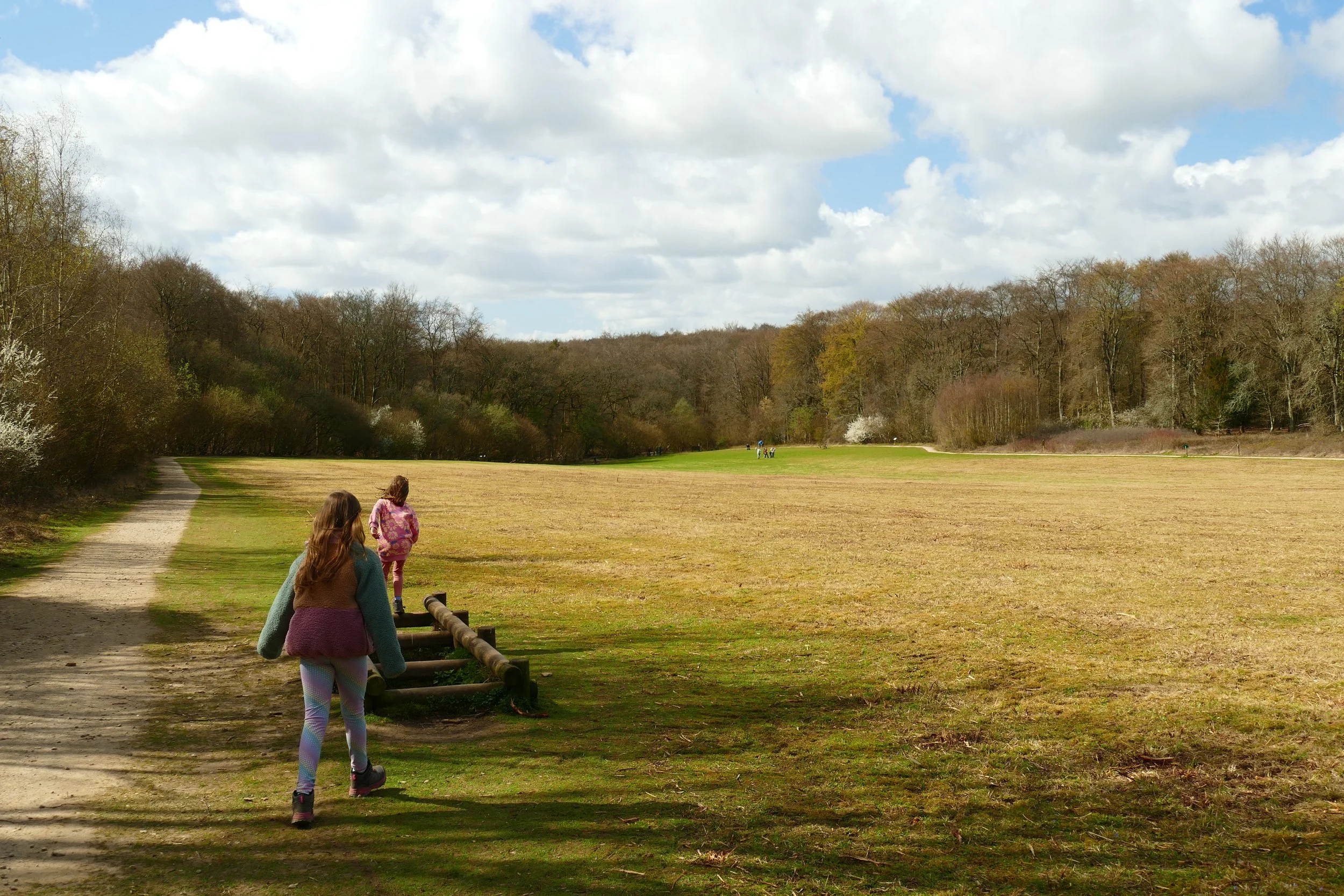 At the end of the path, enter the meadow in a large clearing straight ahead. Cross the meadow to the opposite side and you will find the café and play area.