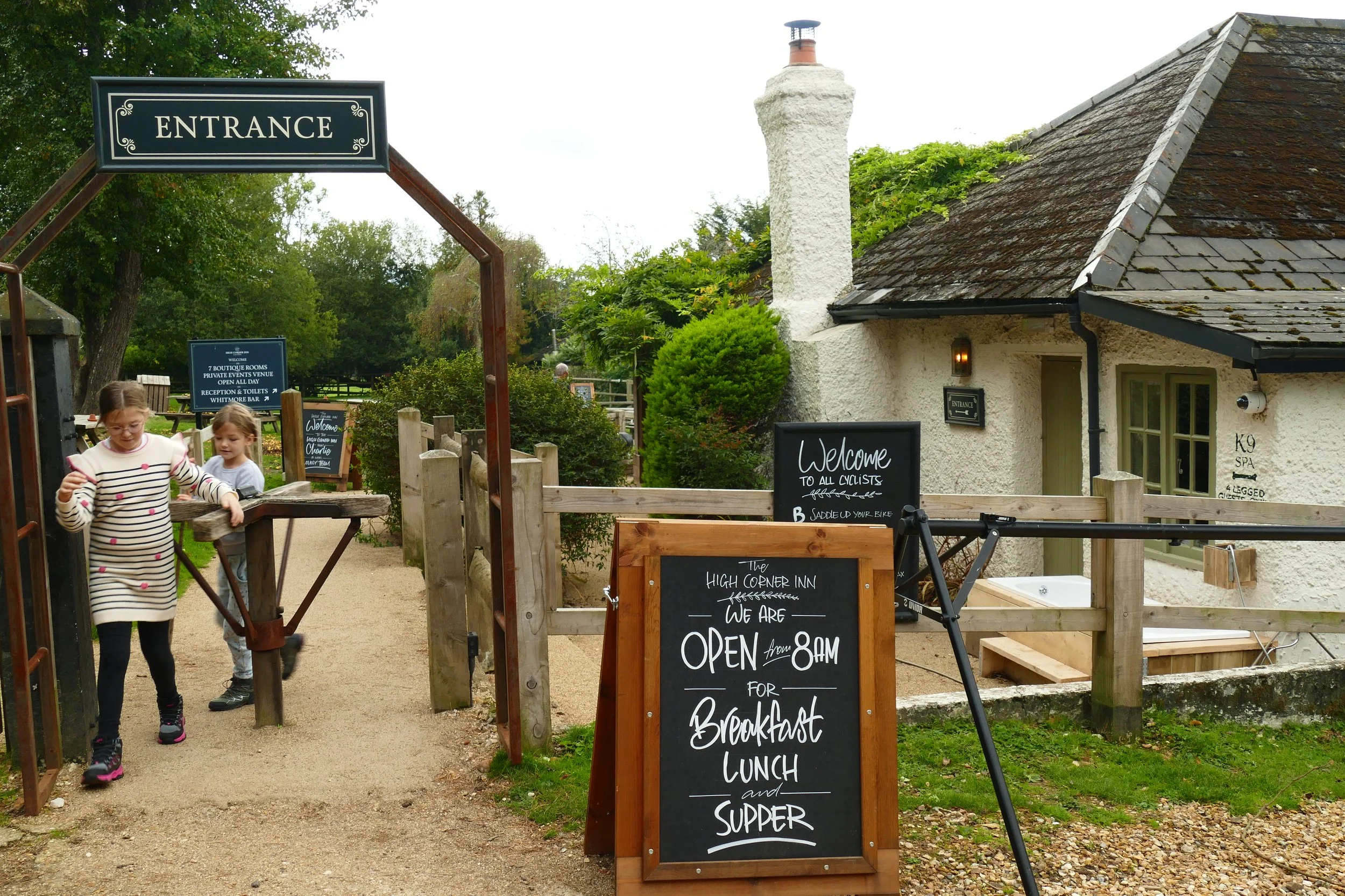 To arrive at High Corner car park or the pub, you will need to leave the Linford road and drive up a gravelled track. The forestry car park will come up first on your left, but if you want to park at the pub, you will need to continue for around another two hundred metres. If you park at the forestry car park, leave the car park, turn left and walk down the gravelled track to the pub.
