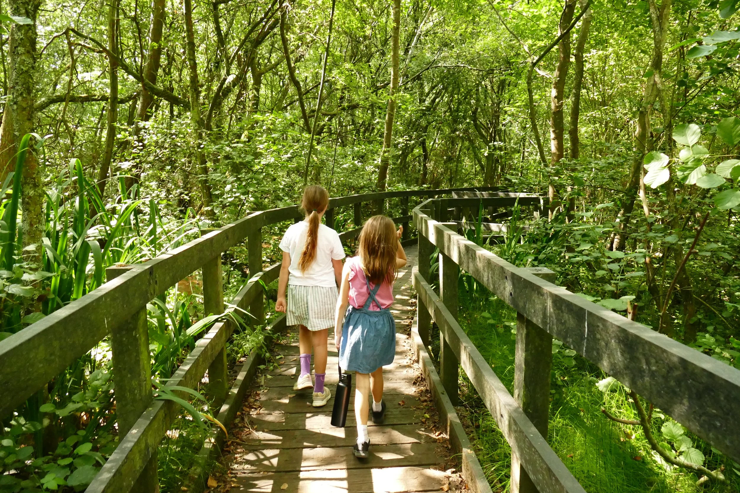 Follow the path as it leads you out through a gate into an open wetland area. The path will curve around in a semi circle before bringing you back into the trees through another gate.