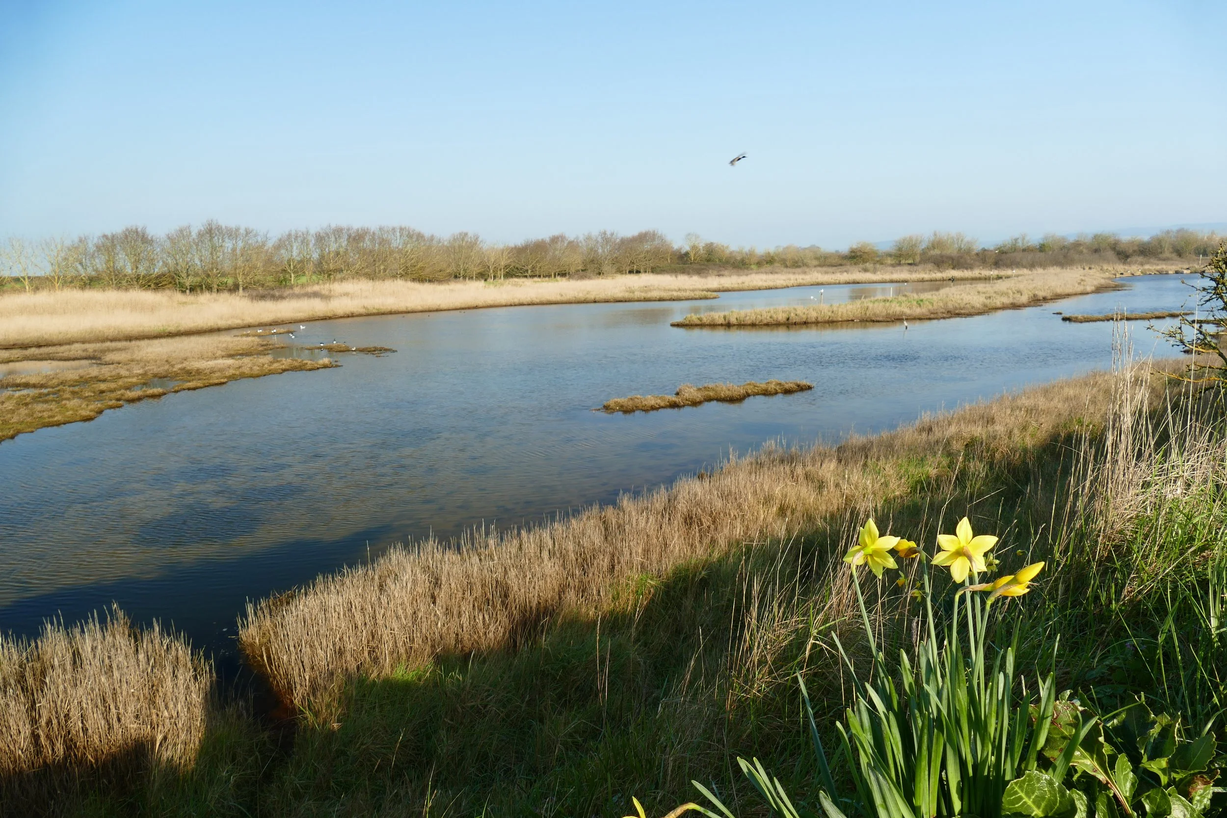 Just after a short section of wooden fence on your right with a sign about ‘hand gathering’, look for the footpath marker to your right in a field. You will need to dip down into the ditch, using the wooden plank to help you cross into the field. Walk along the right-hand edge of the field, and about half-way across, go over the narrow bridge over another ditch. Continue across the field, and towards the other side, the path will narrow and go between hedges.