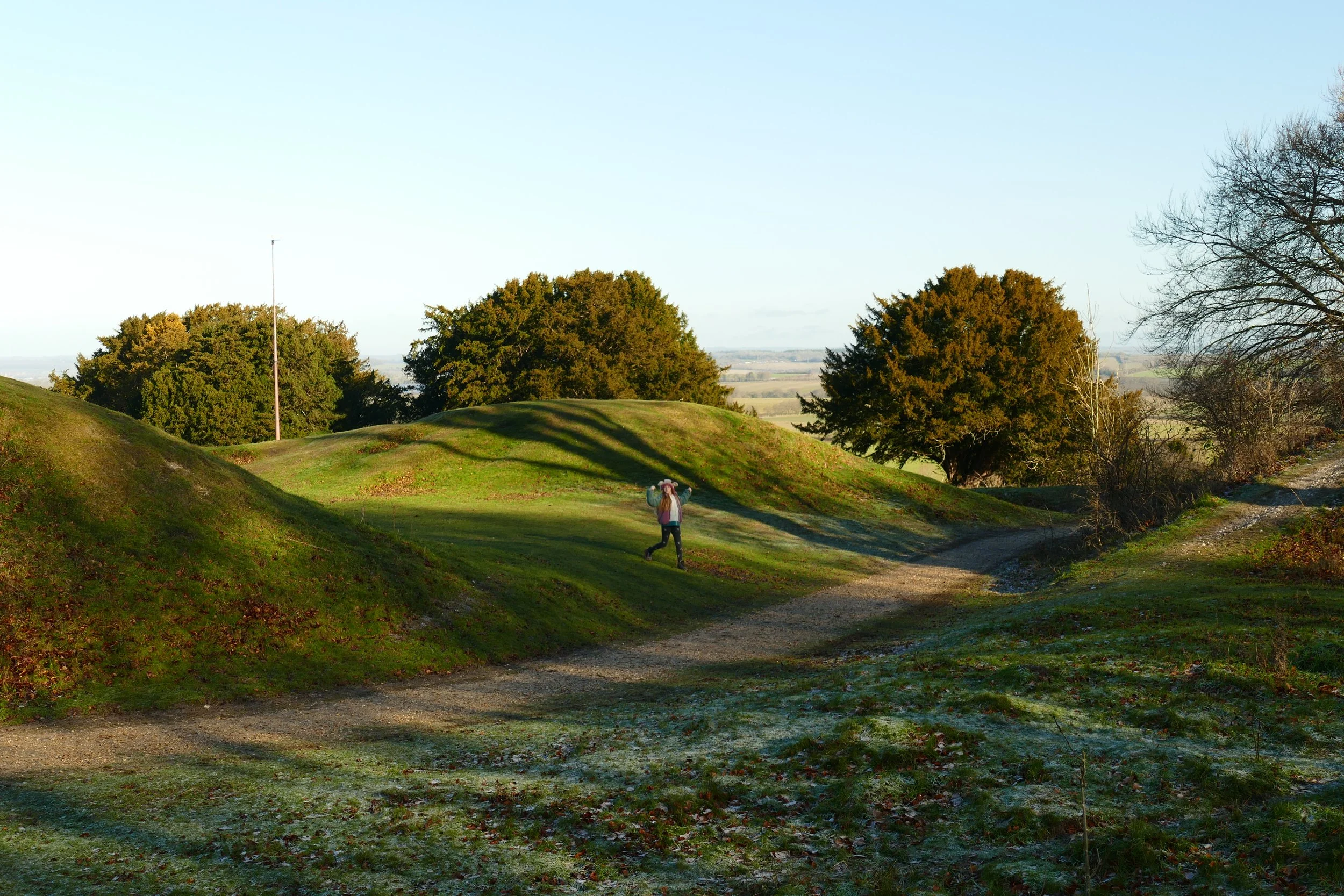 You will find a trig point, far-reaching views, Highland cattle, Exmoor ponies, DIY rope swings, dens, mounds (one with steps), interpretation boards and beech woodland and chalk downland on the slopes. Families could spend hours exploring, playing and picnicking.