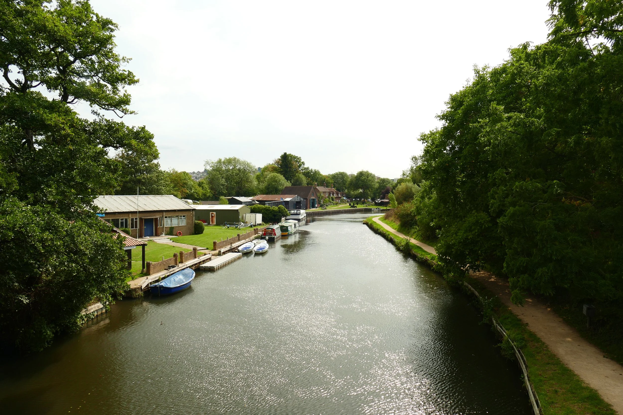 Re-join the towpath on the other side of the busy road and continue until you reach a large brick railway bridge. On the other side of the bridge are some steps which will take you up onto the pedestrian bridge. Cross the canal and then follow the enclosed path. Look out for a noticeboard on your right where you can enter Dapdune Wharf. Please note that Dapdune Wharf is free to enter but is only open Thursday to Monday, 11am-5pm.