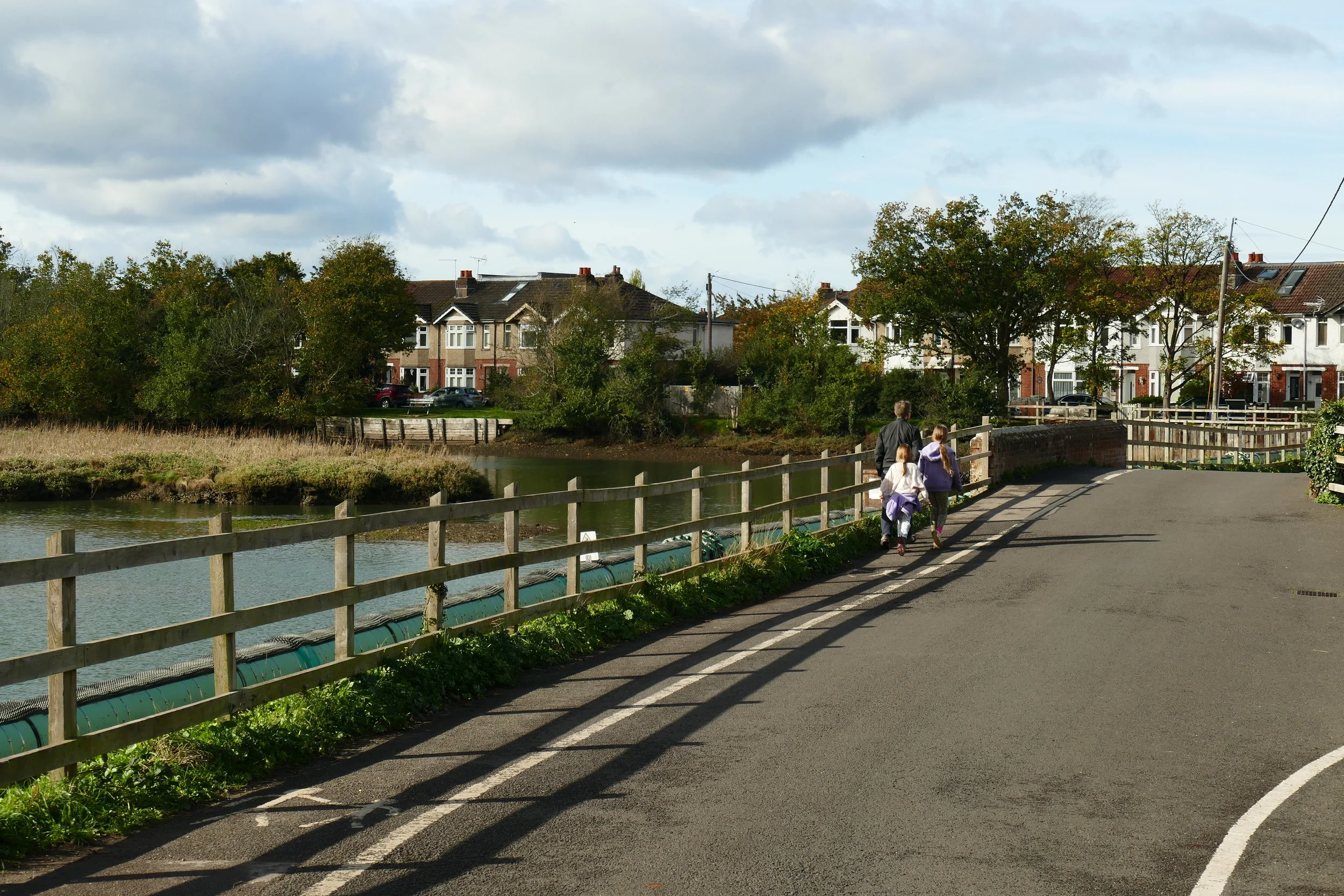 Take the small road opposite the car park entrance and walk past Grove Lodge and Tide Waters. This will bring you down to a recreation ground with a small play area shaped like a pirate ship. After enjoying this, continue onwards along Goatee Beach with the water to your left. You will have views across the water to Southampton Docks. If you have a pushchair or wheelchair, you will need to return to the toll bridge the way you came after enjoying the area. Those on foot can make a small loop past St. Mary’s 12th century Church.