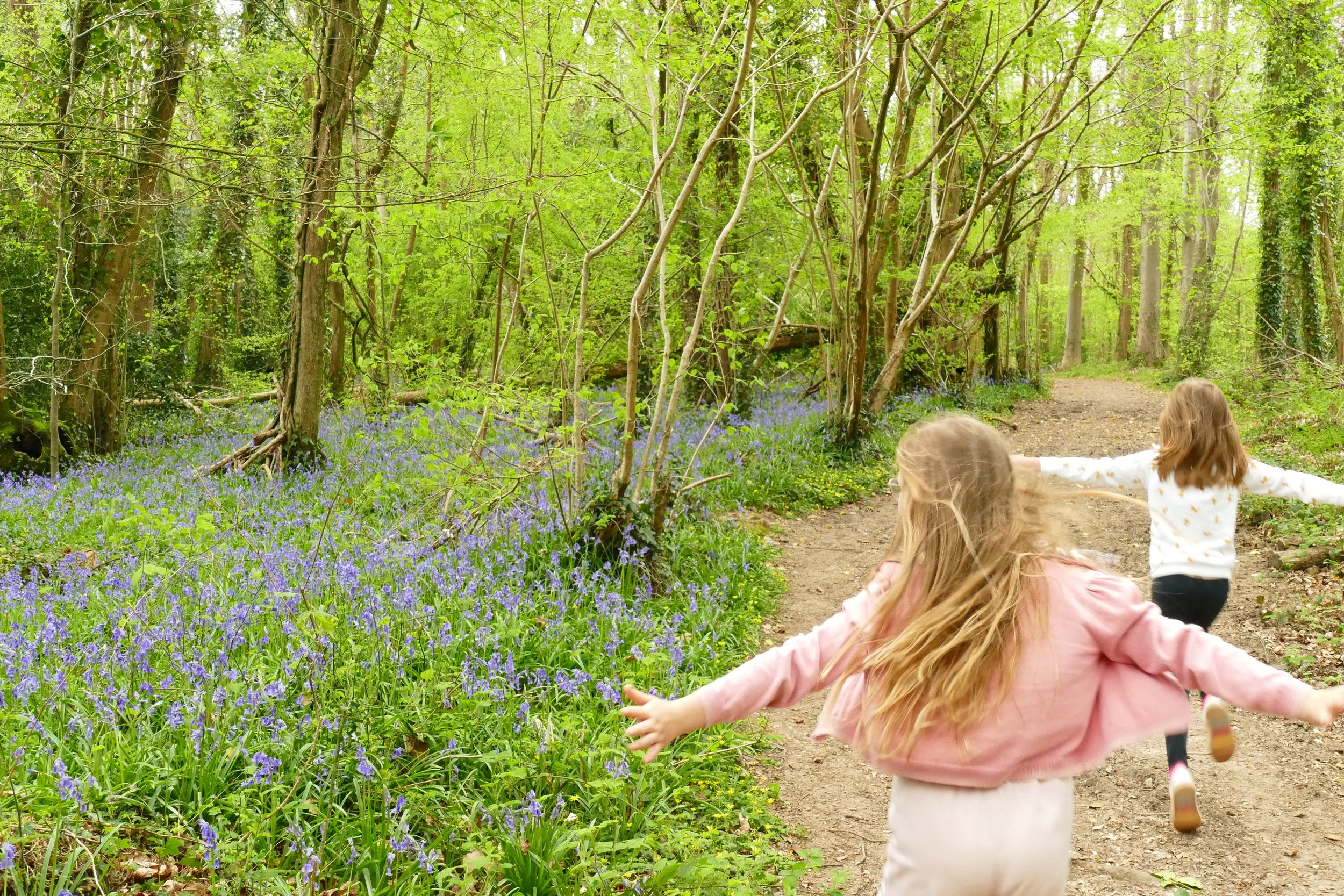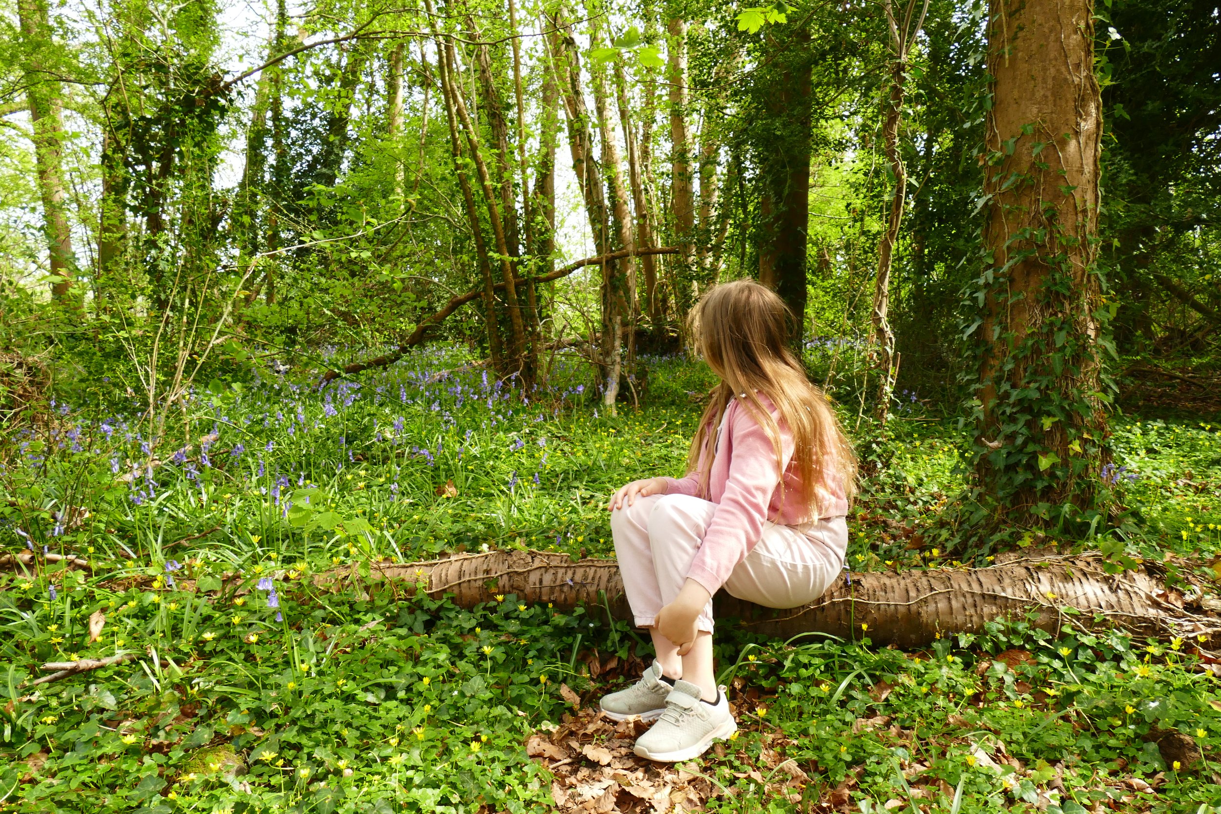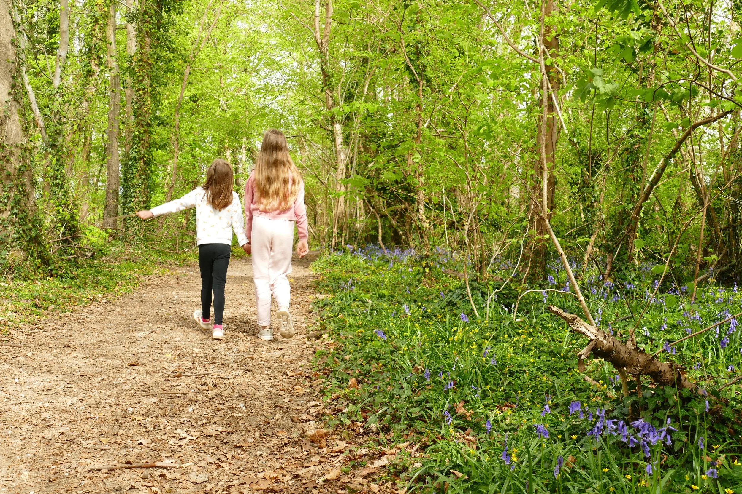 Inside the woodland, you will meet a cross path. The walk continues on the right hand path. The next section of woodland has some bluebells in spring to the right of the path. Turn right at the junction and take the narrow downhill footpath marked ‘Wayfarer’s Walk’. The path will level off as you bear right to go along the back of some houses. Turn left down a grassy area between houses to meet the road (there is some landscaping work going on here, so the description of this ‘grassy path’ may change soon!)