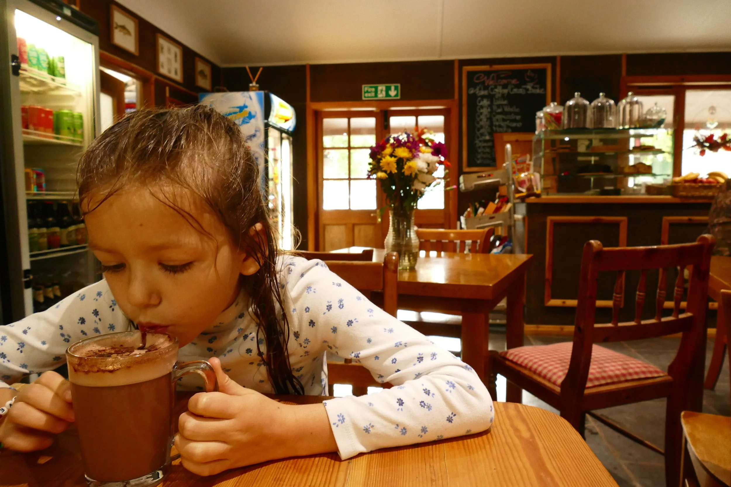 Children will enjoy stopping for a hot chocolate beside the pond.