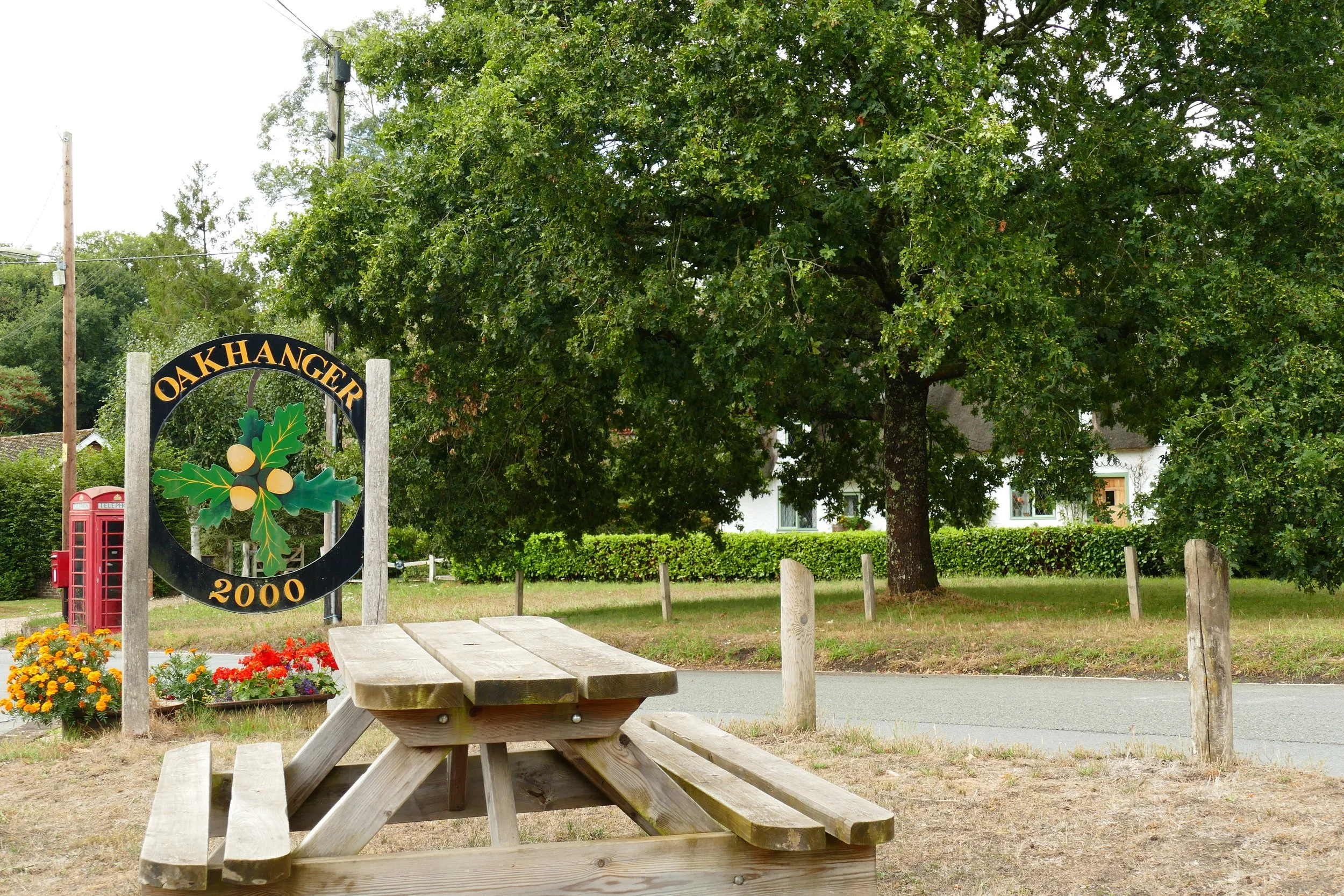 You will see the play area to your right, which is in an enclosed, dog free space. There are a couple of picnic tables on the village green. To reach The Hanger Freehouse, walk across the village green and continue down Oakhanger Road for less than a half a kilometre and find the pub on your right.