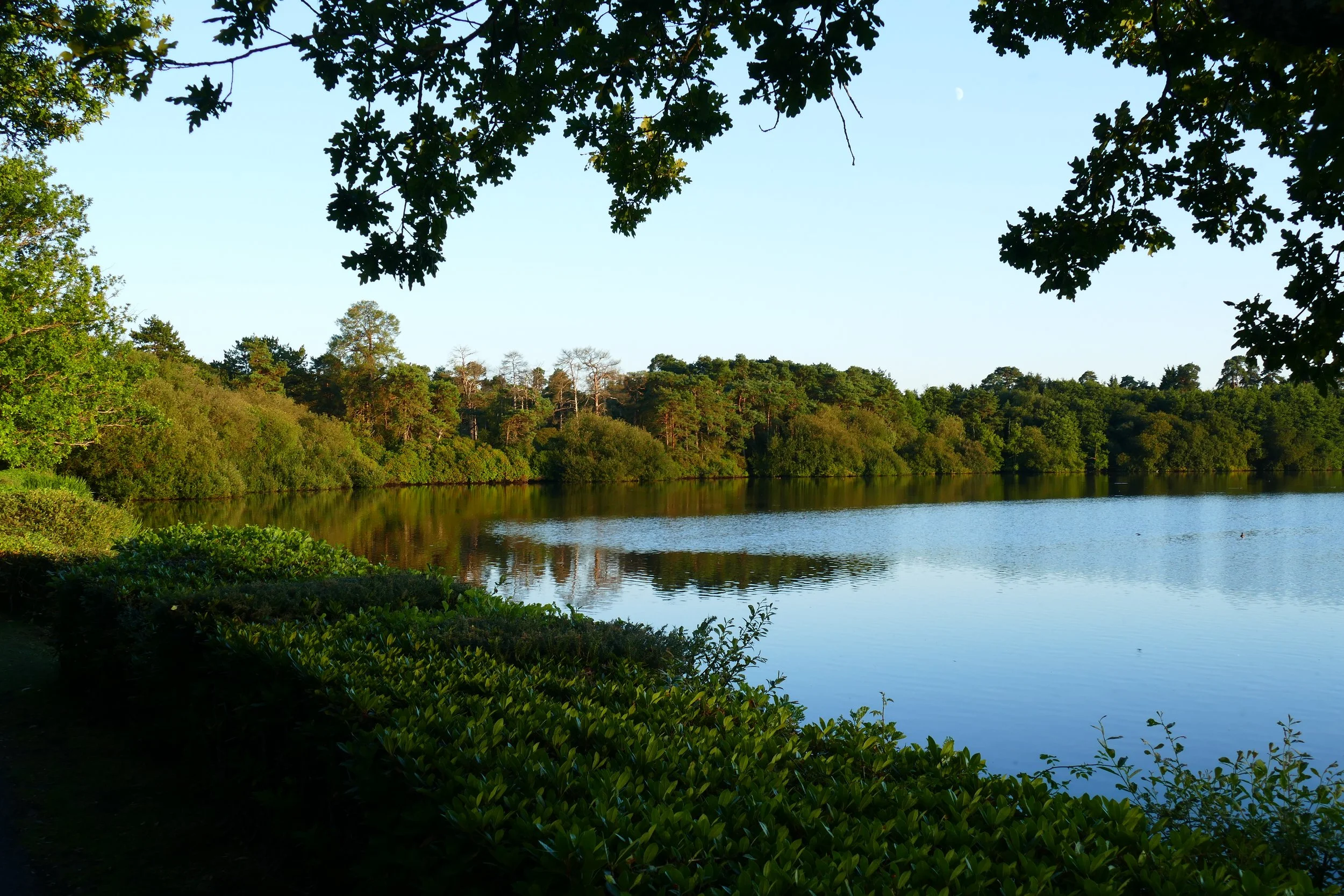 When you hit the tarmac drive and the entrance to Home Park, turn left and walk down the tarmac. Just after a pair of gates at each side of the road, turn left onto the public bridleway. The path will soon spit you out onto the access road to Champneys Forest Mere. Turn left and walk along the road with views of Folly Pond to your left. Just as the pond goes out of view with tall bushes to your left, look out for the path on your right going into rhododendrons.