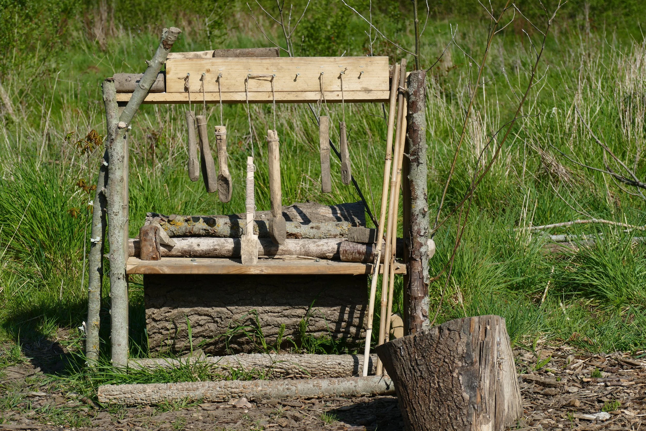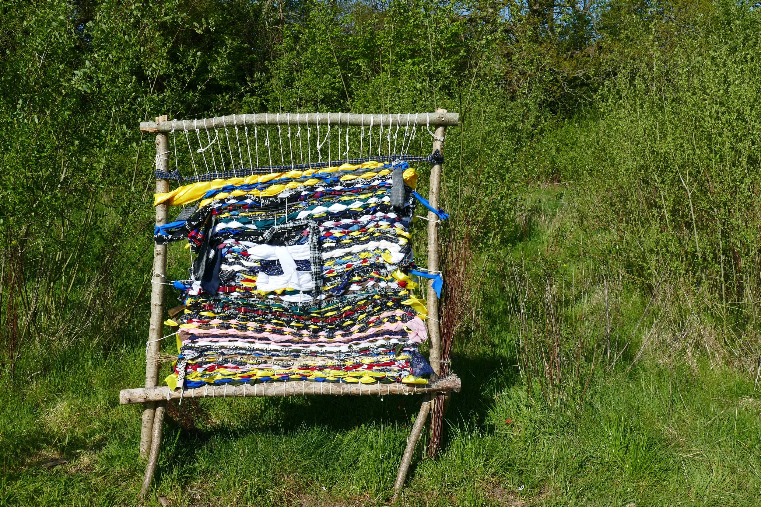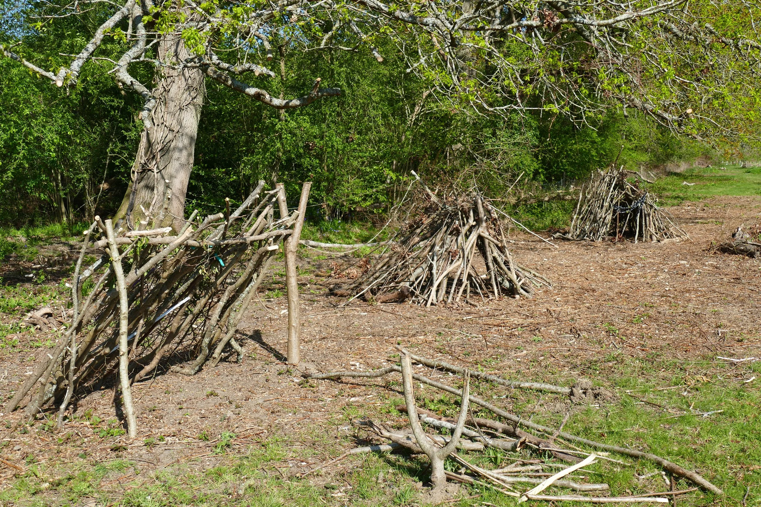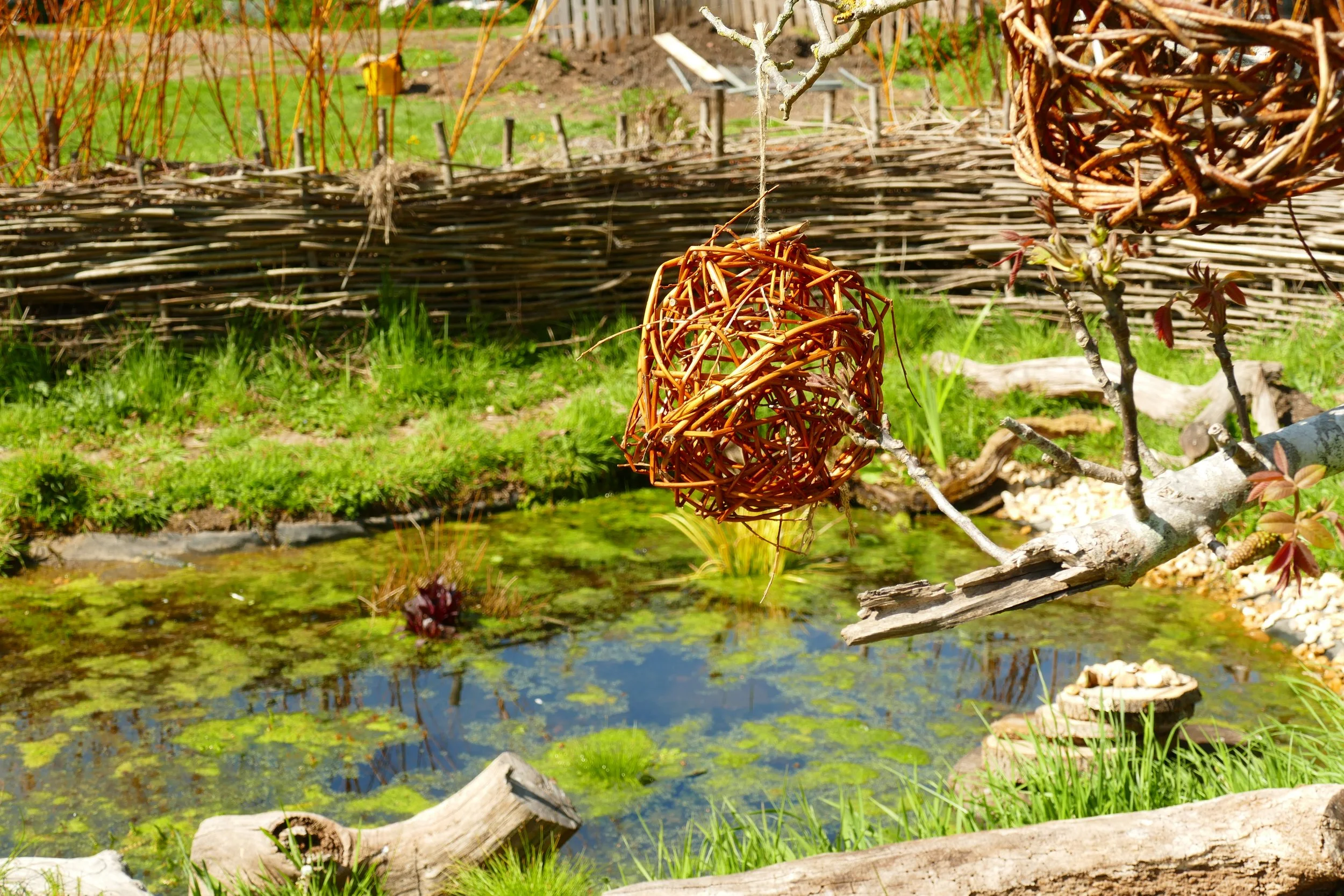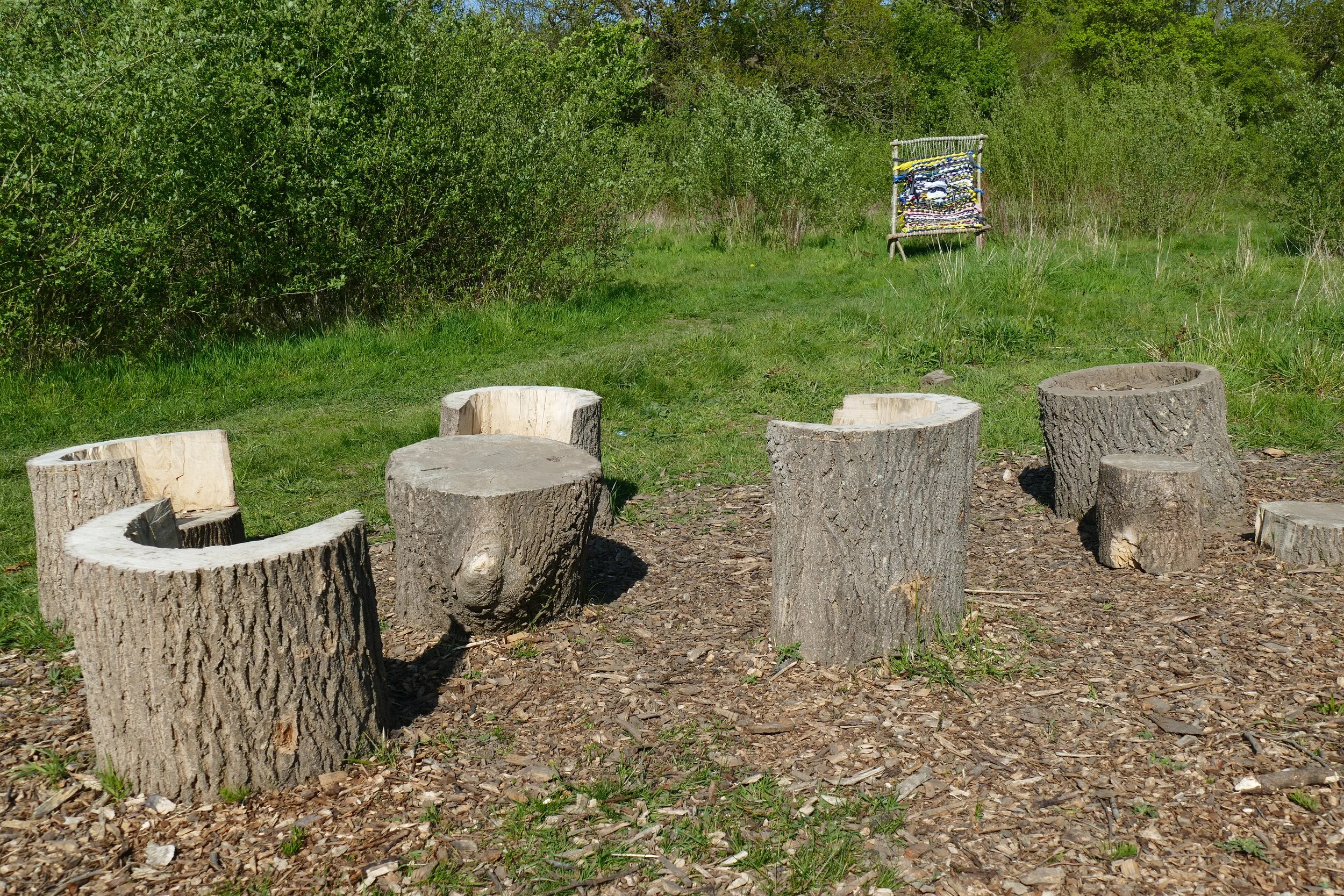 This walk is a rectangle shape with four turns, making it nice and easy to follow. Begin from the car park by the information board and walk up between the two black barns. Turn left along the wide gravel track, passing a wooden noticeboard to your right. This path will take you in a straight line to the start of the Willow Walk. A circular sign will show children where to start. They will find a mud kitchen, den making area, balance beams, a sky lounge, stone library, willow tunnels and log seating all within a small area. Once the kids have had their fun, continue the walk along the wide, chunky gravel track to the right of the Willow Walk. This straight path will take you along the edge of Lollesworth Wood, where you will see bluebells in spring.