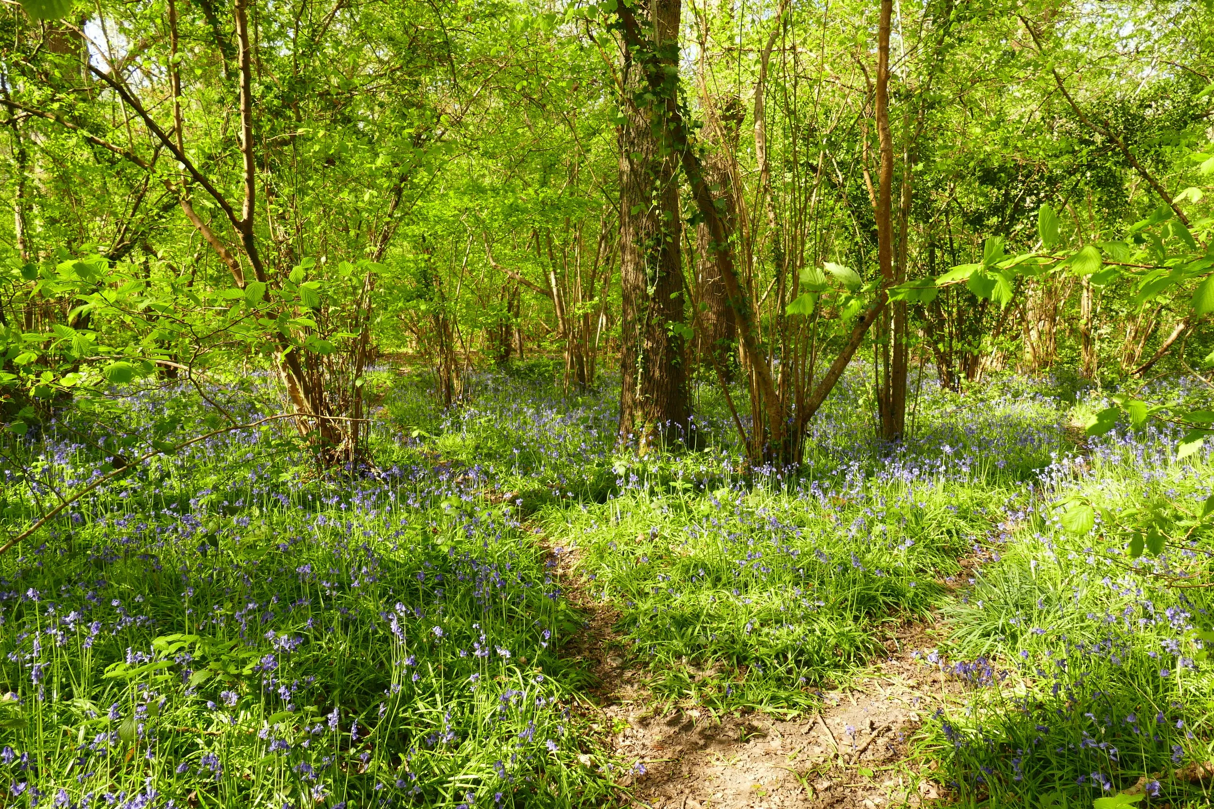 Terrain: The outward leg past the Willow Walk and bluebells wood is on a wide, flat chunky gravel path. The homeward leg involves uneven and narrow paths.